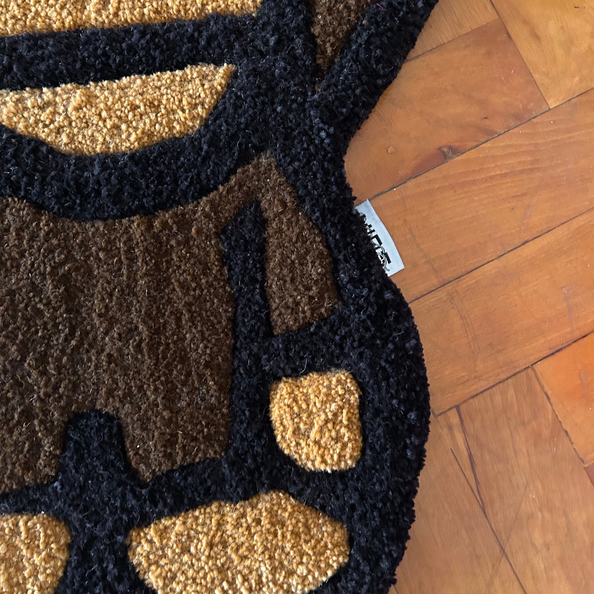 Finishing: Transparent white glue to secure tufting; polyester backing with twill tape around the edges.