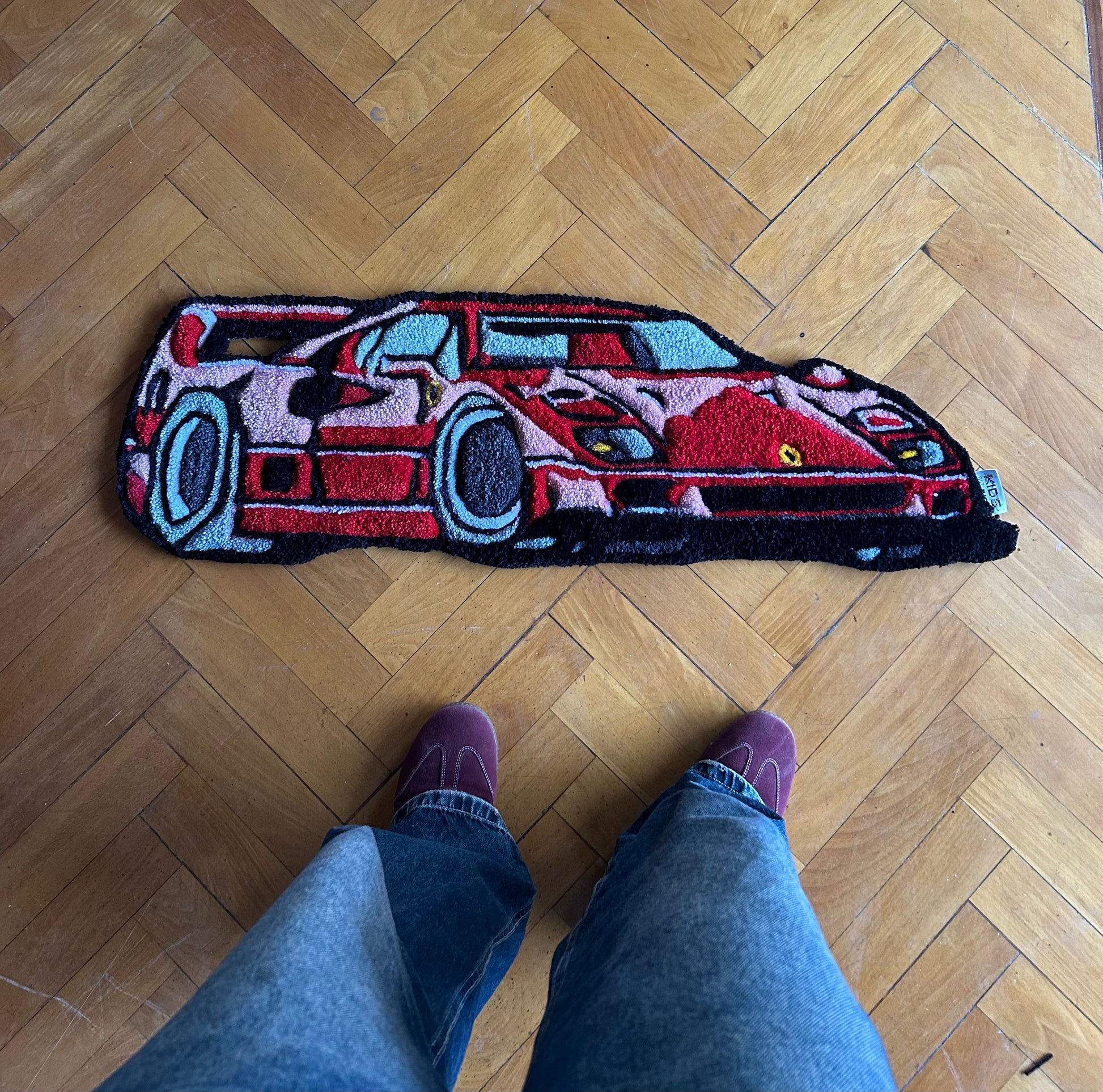 Hand-tufted, cut-pile textured surface. Transparent white glue to secure tufting; polyester backing with twill tape around the edges.